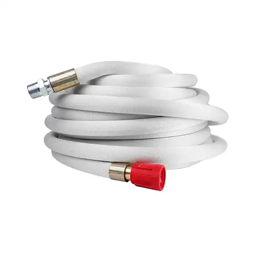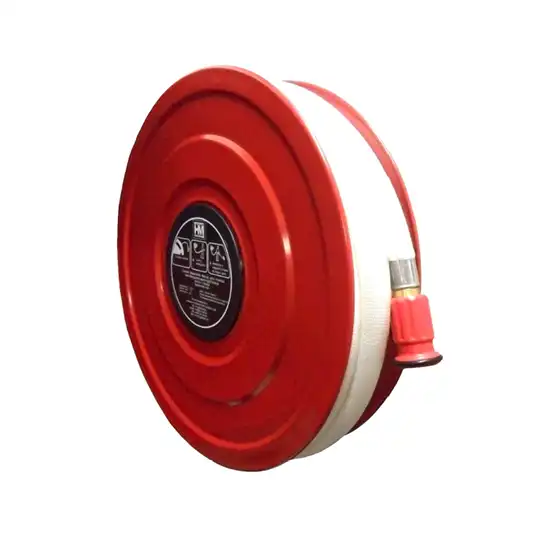 Mangueira de combate a incêndio semirrígida (mangotinho) Rigidflex na cor branca fabricada em fibra sintética, de tecido, por meio de entrelaçamento de fios de monofilamento e multifilamentos de alta tenacidade, de modo a manter a sua seção circular, mesmo quando não pressurizada. Tubo interno de borracha sintética no diâmetro de 25mm (1″). Conexão de entrada de 1″ rosca macho 11 fios BSP, e saída com esguicho de corpo interno em latão, com punho moldado em borracha vermelha com indicador ON-OFF em alto relevo. Normas de referência: ABNT NBR 13714, 16642 e EN 964/1996.